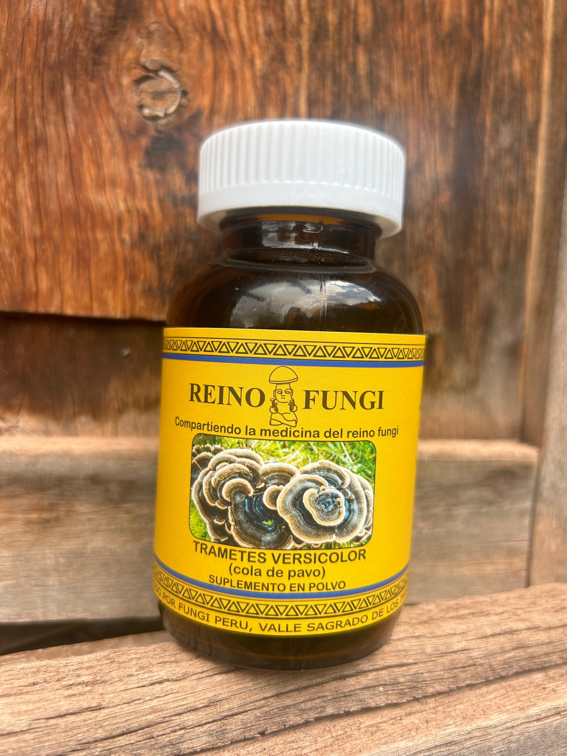 Con las propiedades altamente investigadas de la Cola de Pavo (Trametes Versicolor), este hongo refuerza eficazmente el sistema inmunológico, brindando a tu cuerpo el apoyo que necesita para mantenerse saludable.  Lo que distingue a la Cola de Pavo son sus componentes Krestin (PSK) y el polisacaropéptido (PSP), los cuales se usan ampliamente hace más de 40 años como tratamiento adyuvante para pacientes con cáncer en China.